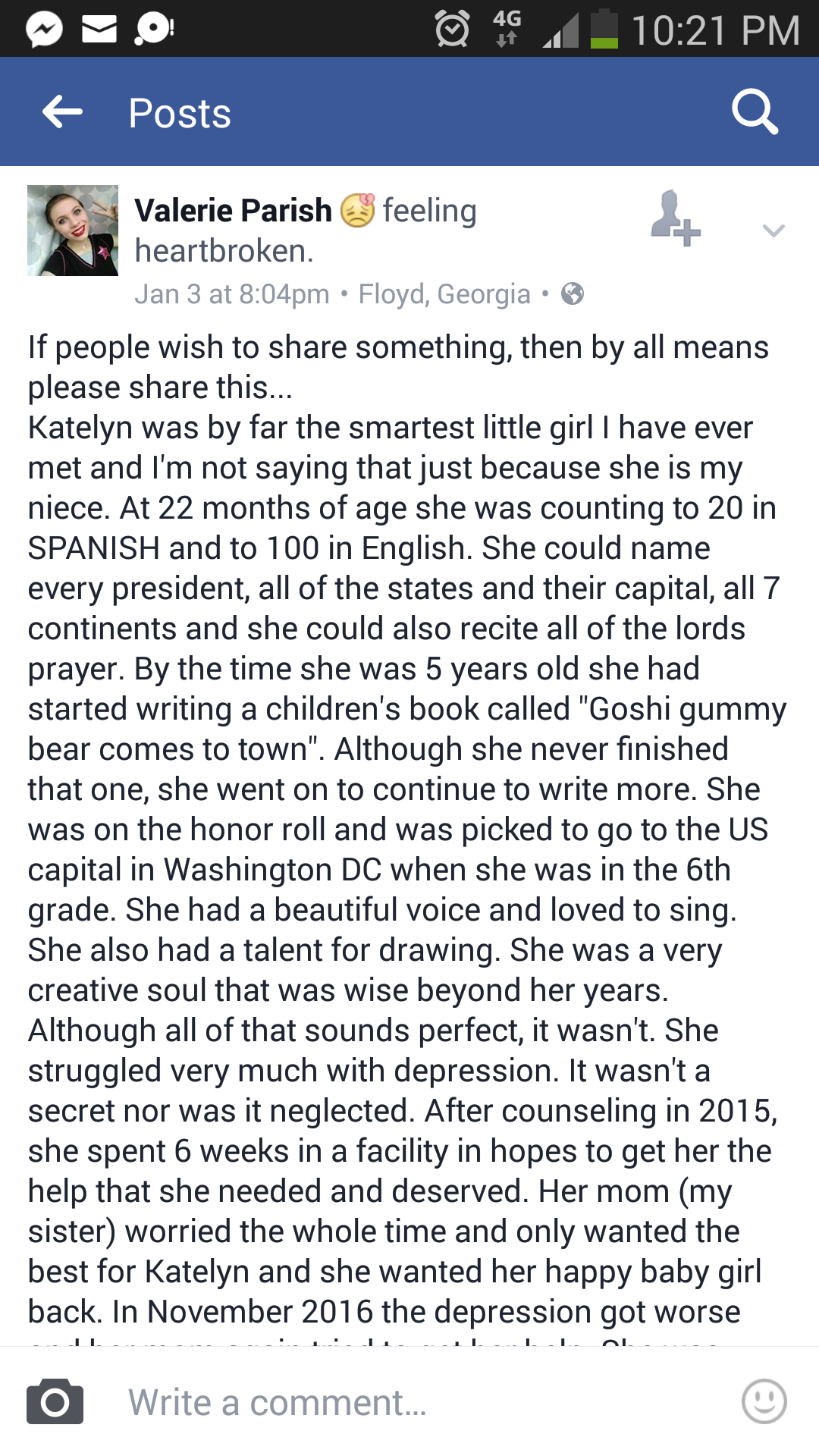 I’m not stating this to be cruel, I am stating this because it is a cold, hard fact. I didn’t know Katelyn. I don’t know if the accusations she made against her family members were true. What I do know is that she had issues that were not addressed. Whose fault that is, I have no clue and not here to judge. But I felt the video deserved to be seen.